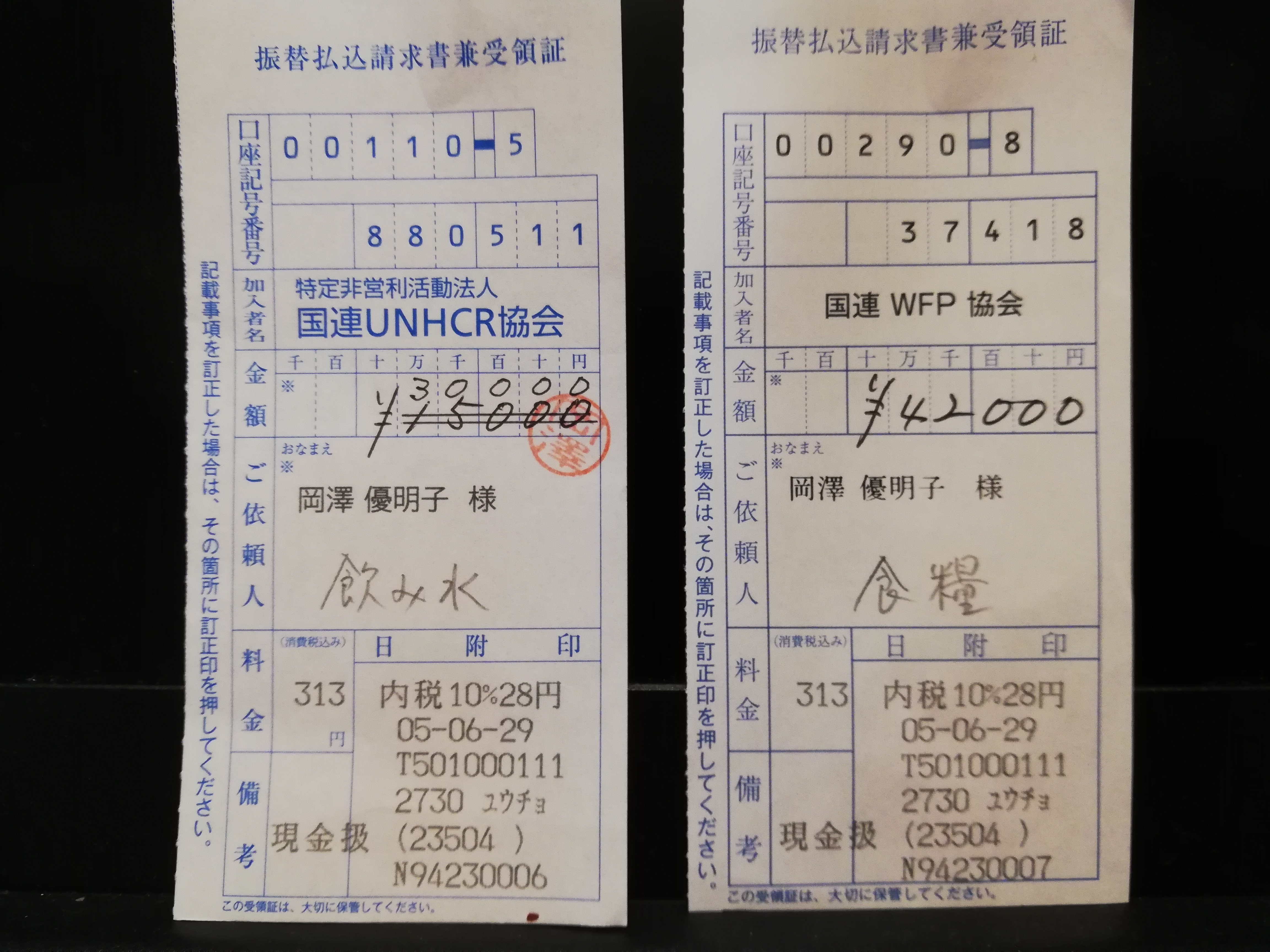 ・国連WFP協会「食糧支援」42000円